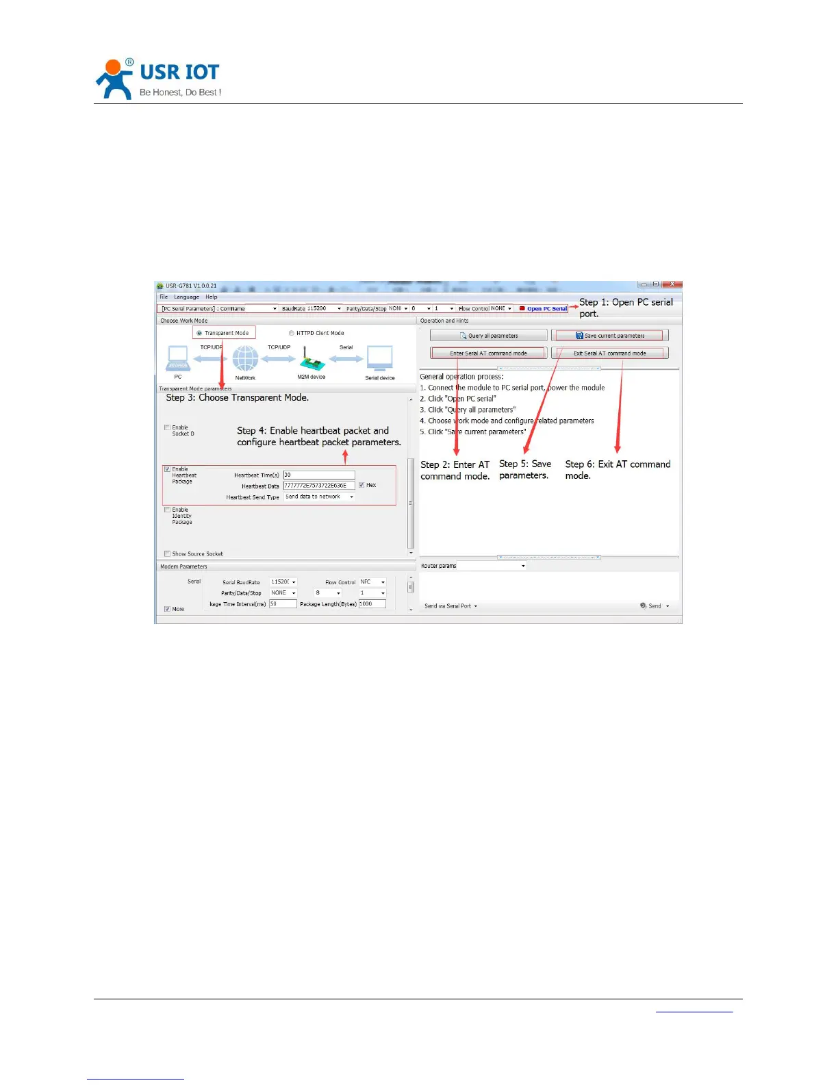 Heartbeat packet is only available in transparent mode. User can configure heartbeat packet function by setup