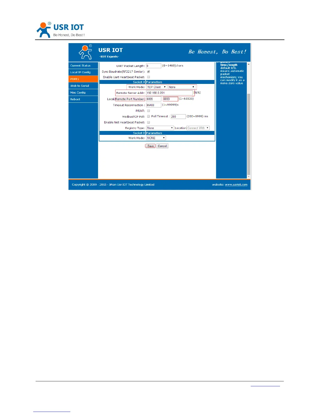 User can set N510 in TCP Server mode and related parameters by setup software or web server as follows: