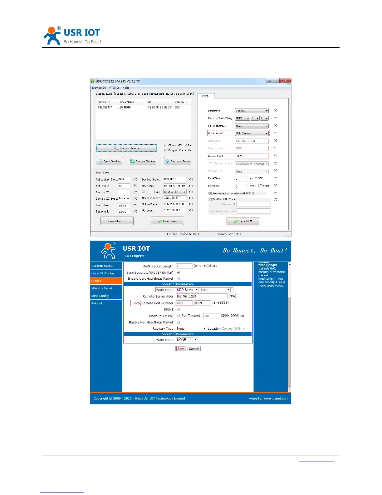 User can set N510 in UDP Server mode and related parameters by setup software or web server as follows: