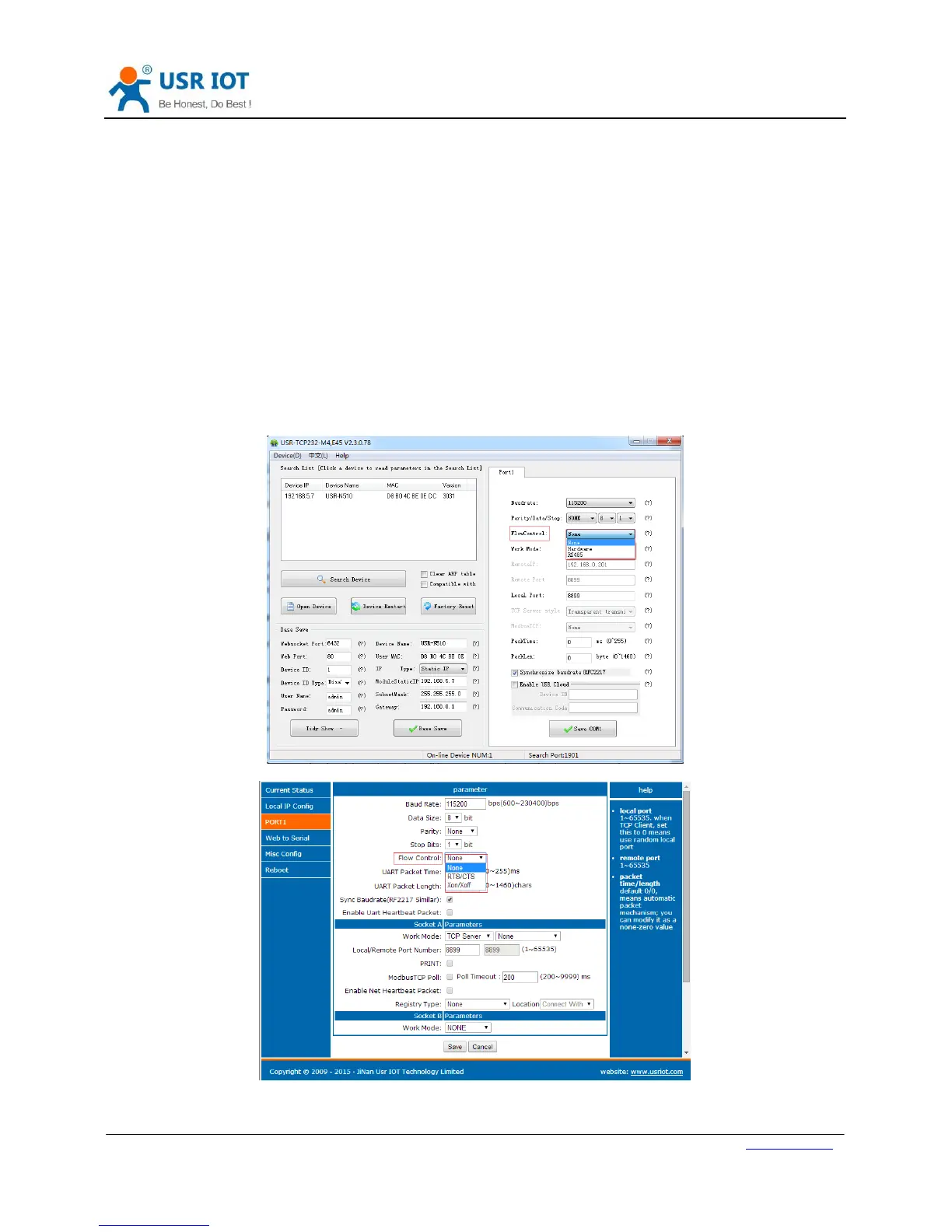 Xon/Xoff. User can select Flow Control method by setup software or web server as follows: