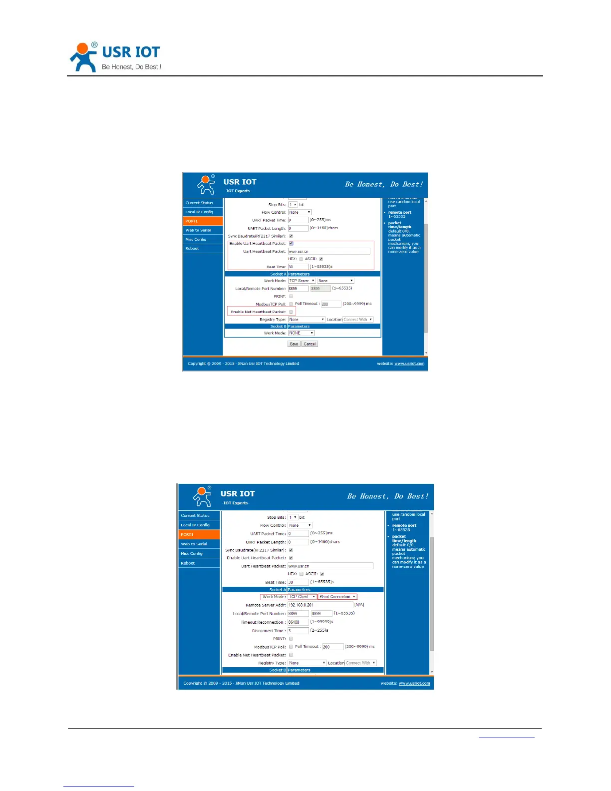 mode). User can set N510 with Heartbeat Packet function by web server as follow: