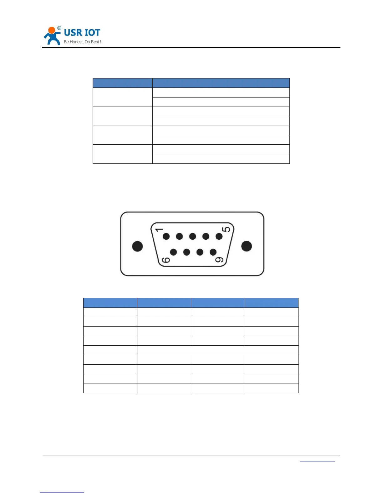 USR IOT USR-N510 - LED Indicator; DB9 Pin Definition; DB9 Pinboard