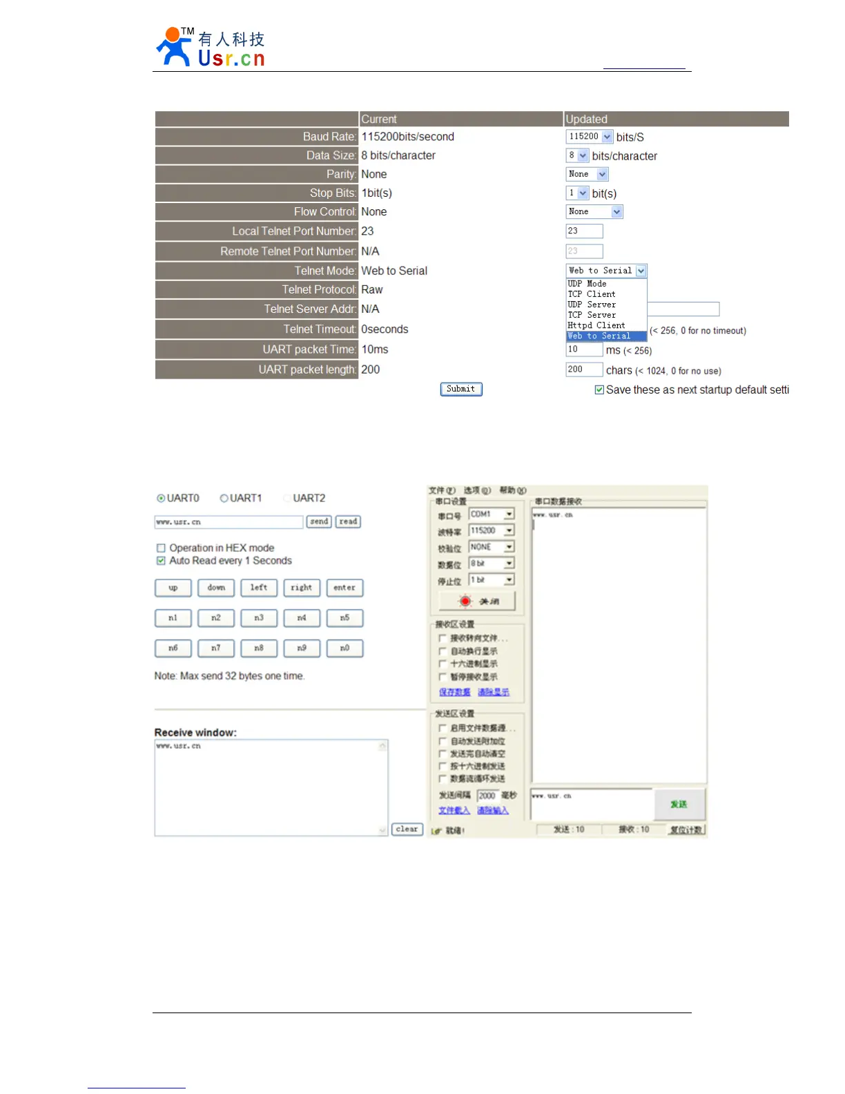 2 、 whether WEB to Serial mode or not, send web data to serial always work.