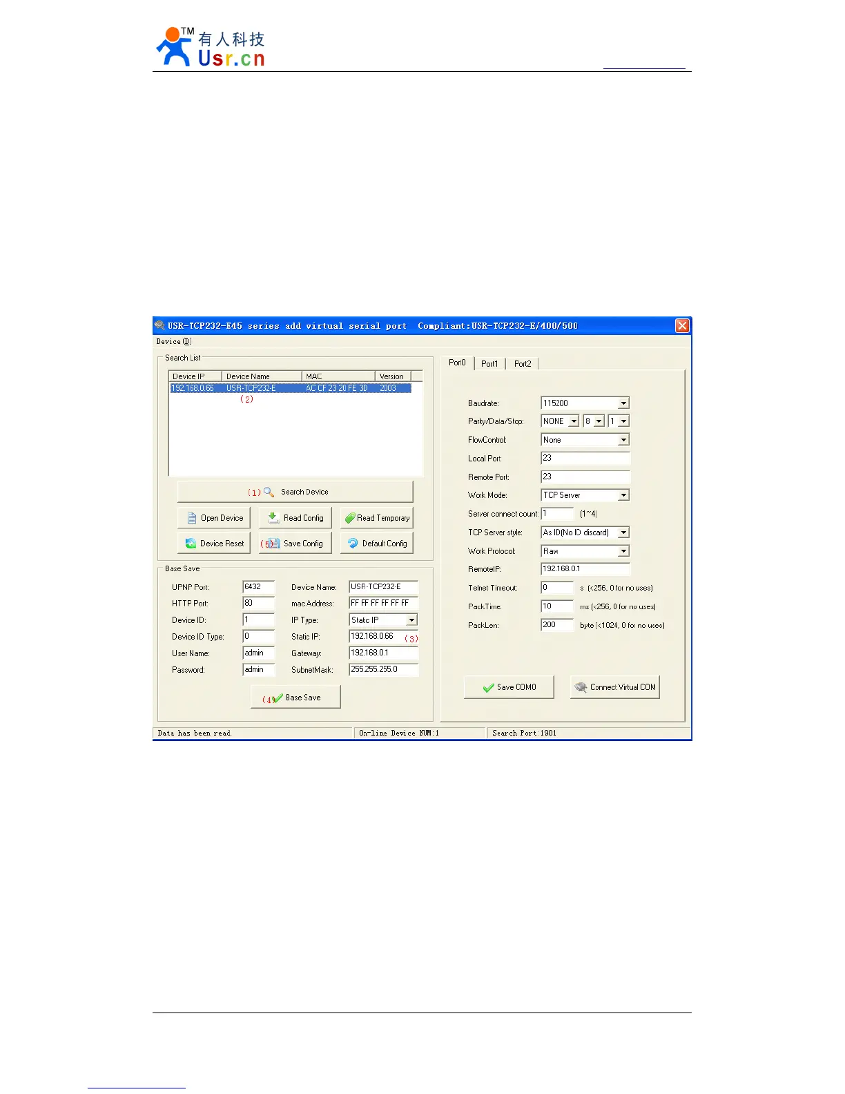 1. through software USR-TCP232-E45 Setup V1.0.5.0;