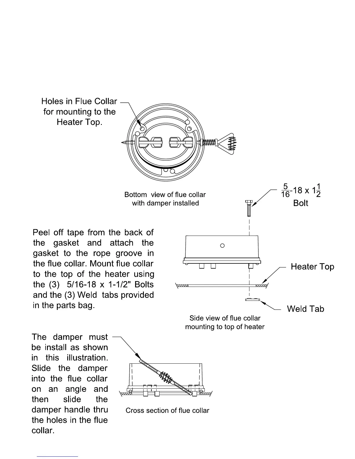 This heater comes equipped with a cast-iron ue collar with holes to mount the solid damper as