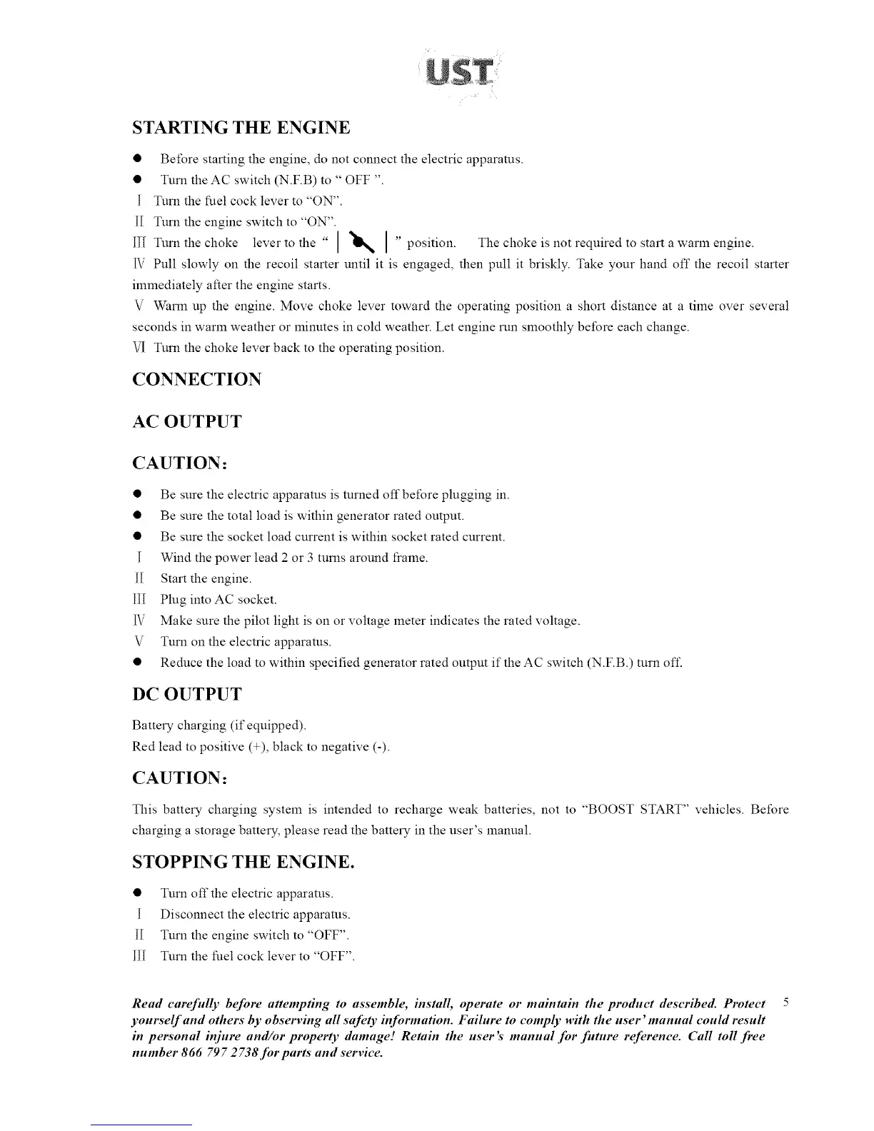 • Reduce the load to within specified generator rated output if the AC switch (N.F.B.) turn oft'.