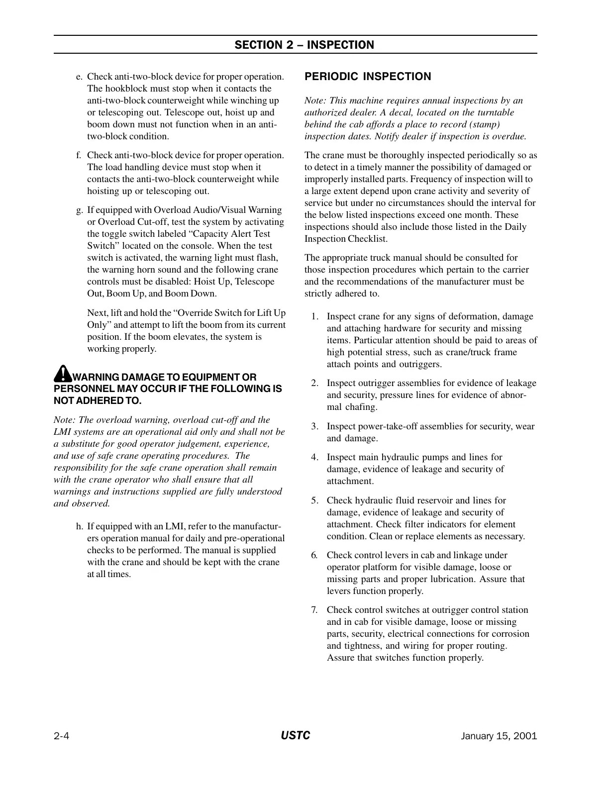 e. Check anti-two-block device for proper operation.