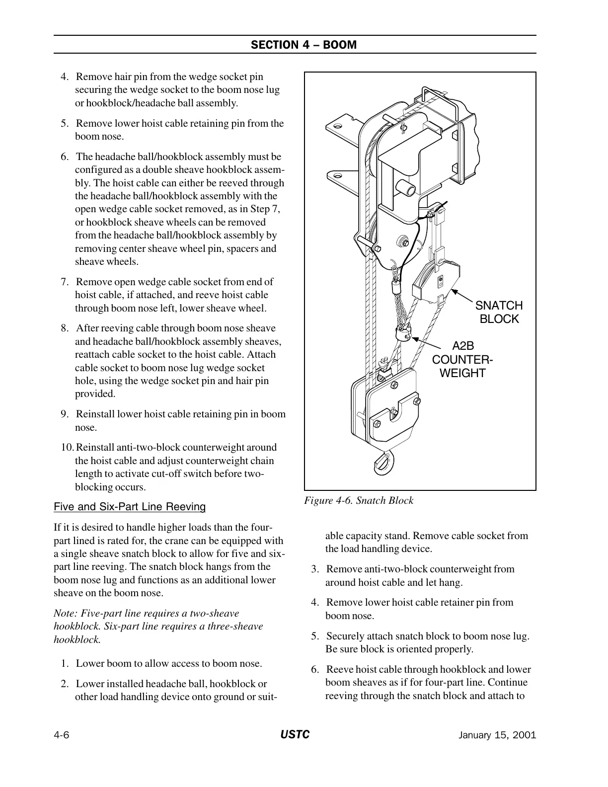 5. Securely attach snatch block to boom nose lug.