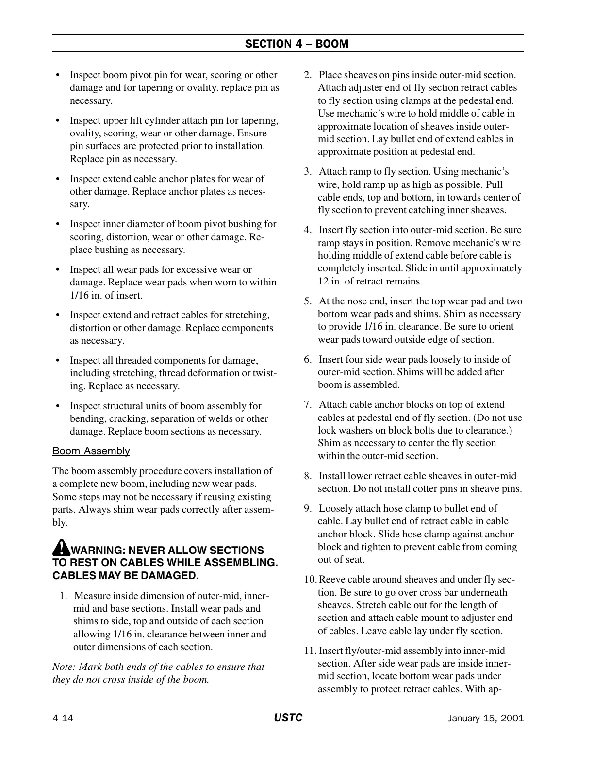 damage. Replace boom sections as necessary.