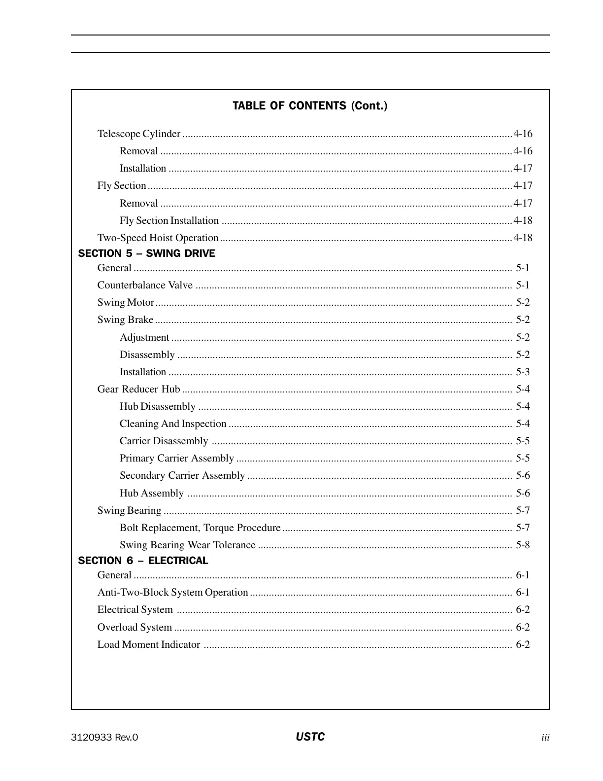 Swing Bearing ................................................................................................................................. 5-7