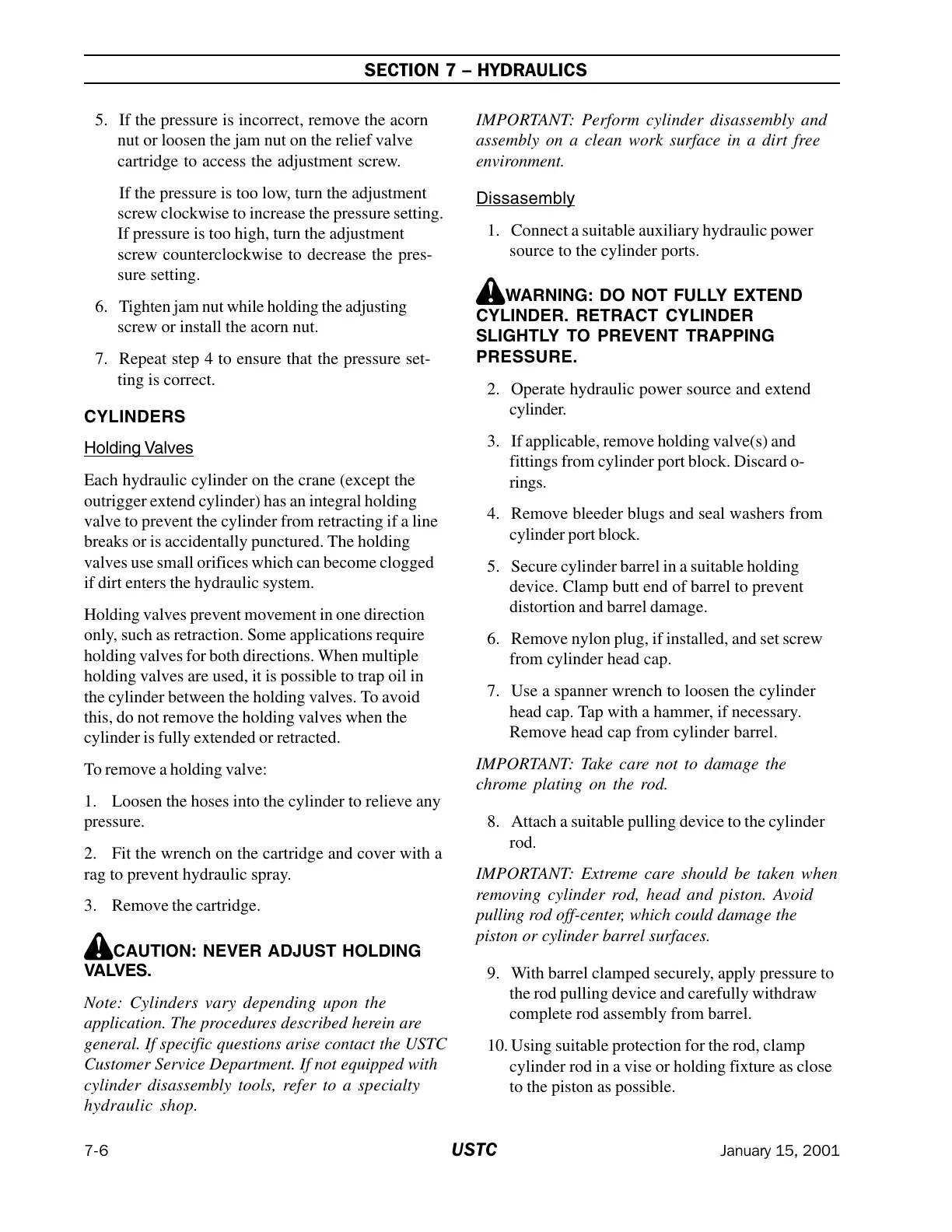 the cylinder between the holding valves. To avoid