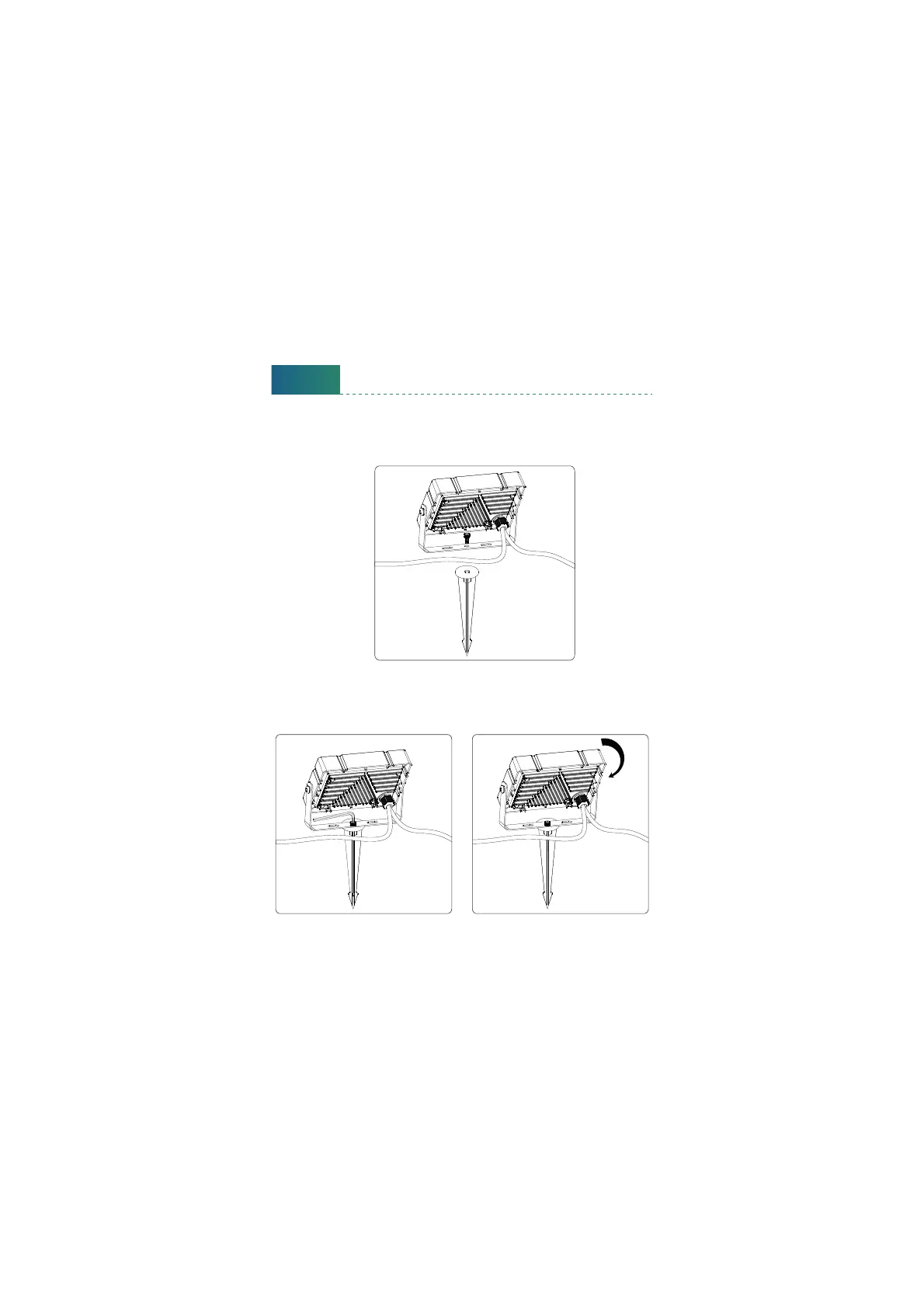 Step A: Aach the ground stick to the Flood light, with the screw provided in