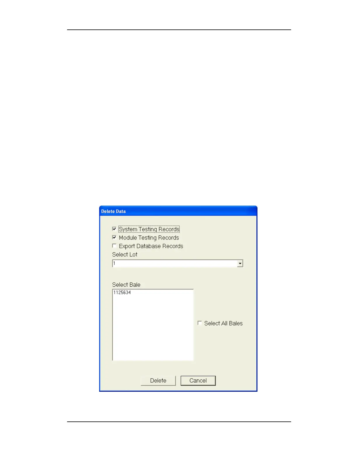 Bale IDs to be deleted can be highlighted, or the checkbox for Select