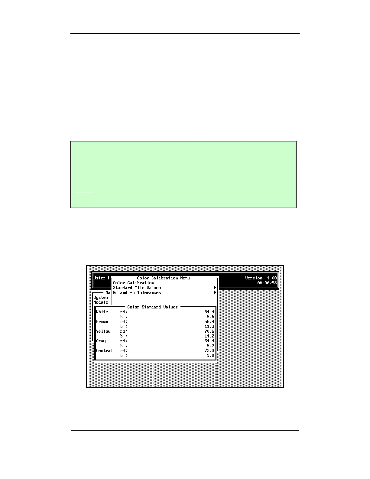 correct, press ESCAPE to return to the COLOR CALIBRATION MENU.