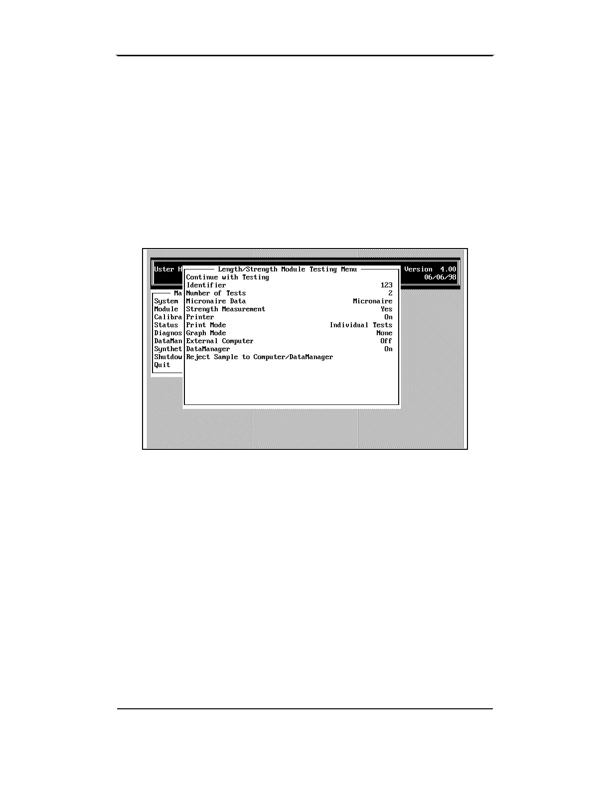 LENGTH/STRENGTH MODULE TESTING MENU is