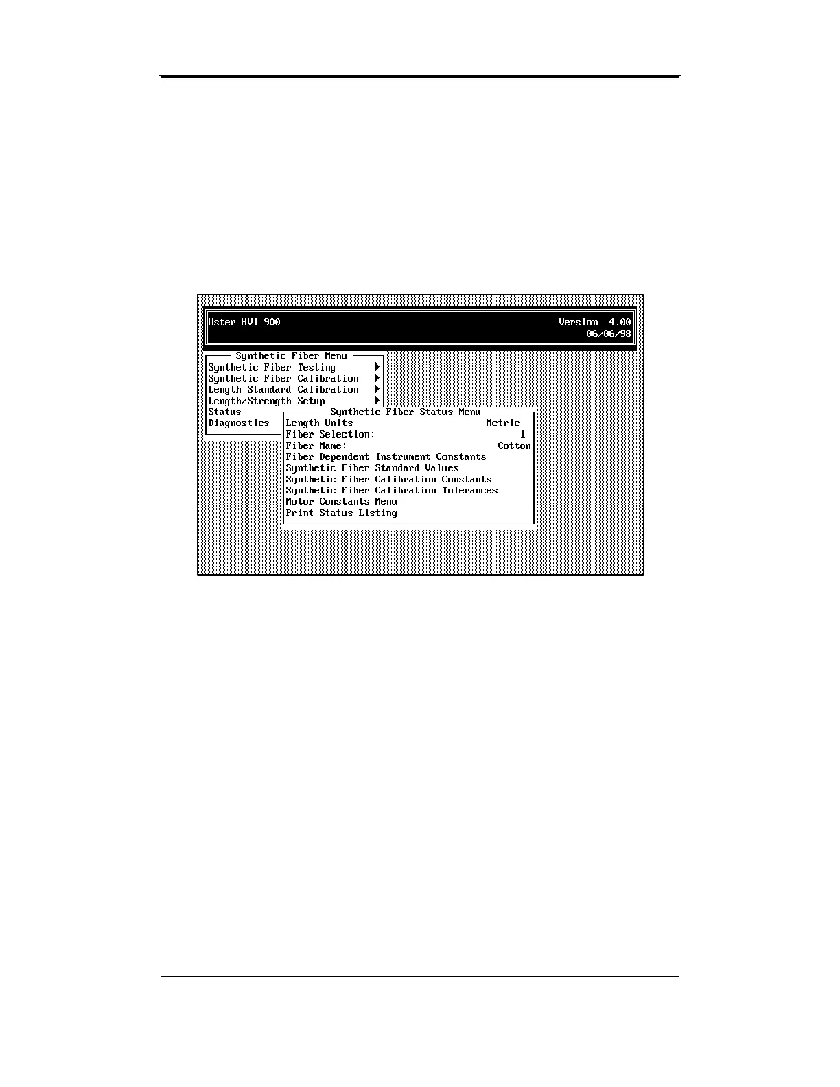 Access the SYNTHETIC FIBER STATUS MENU by selecting the