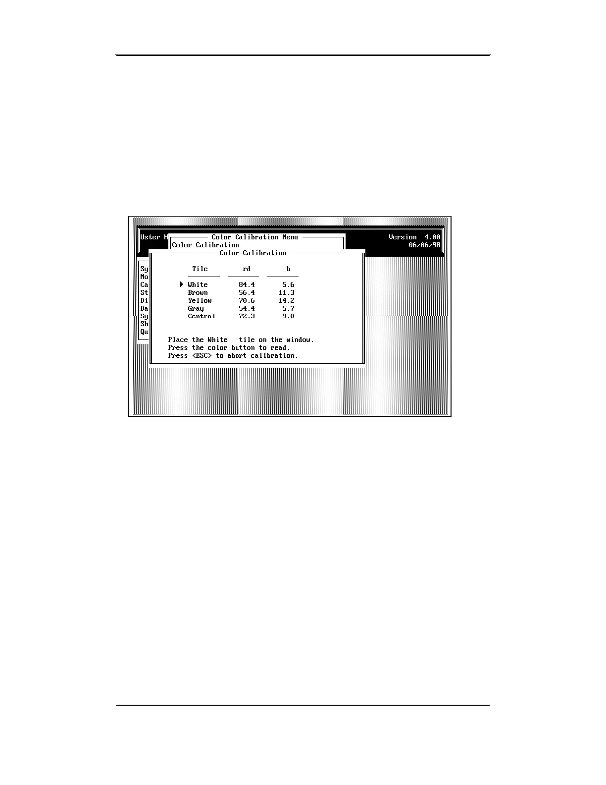 item from the COLOR CALIBRATION MENU