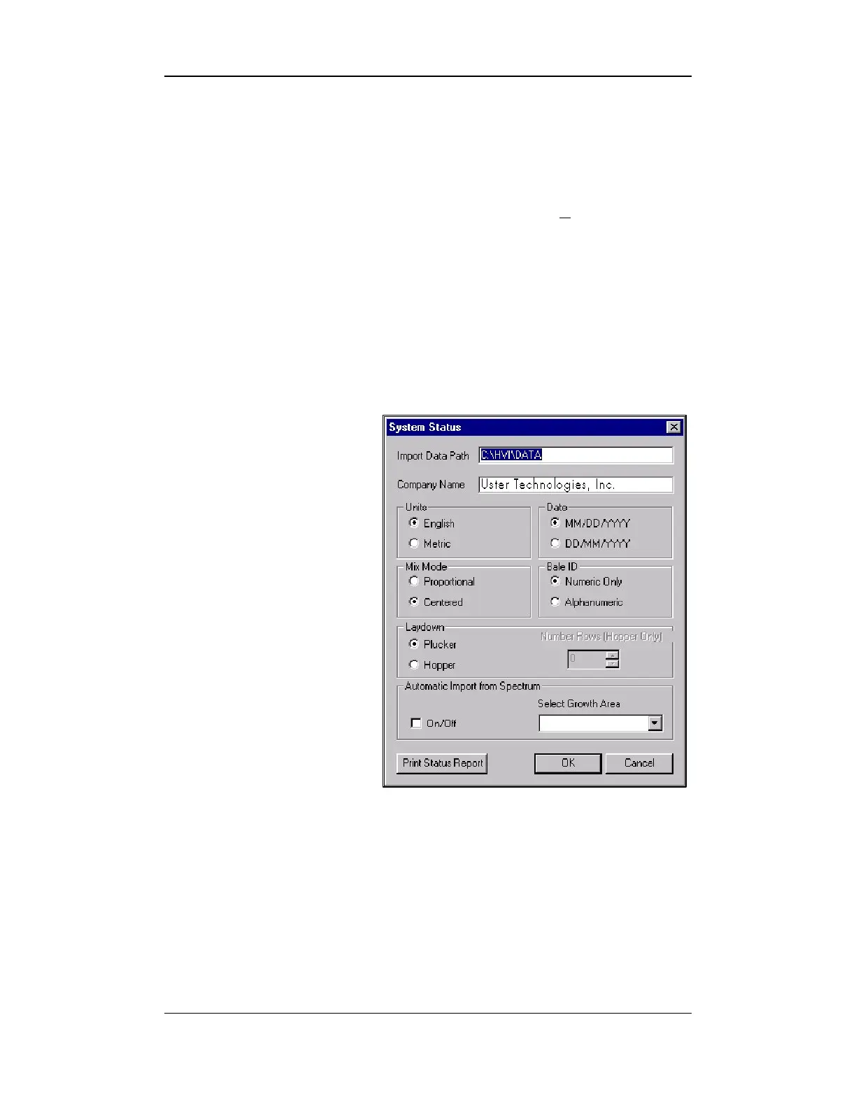 item from the BALE MANAGER MAIN MENU. Select SYSTEM.