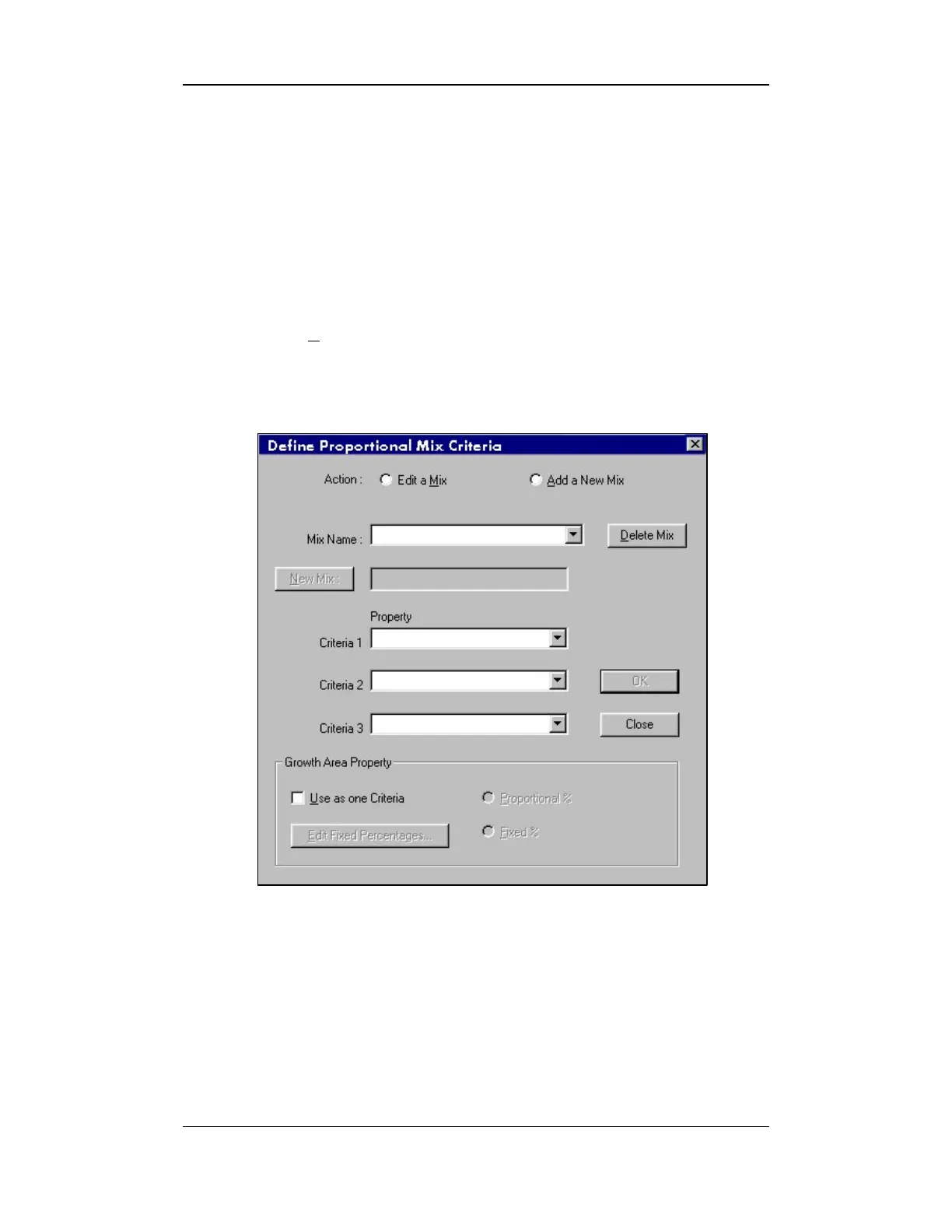 Figure 10-10: Define/Proportional Mix Criteria Screen