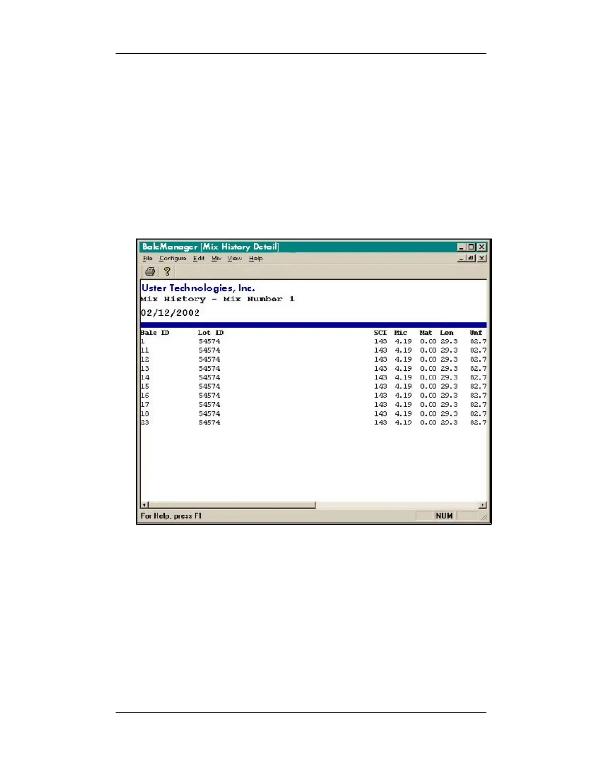 4. The VIEW MIX HISTORY DETAIL screen will appear: