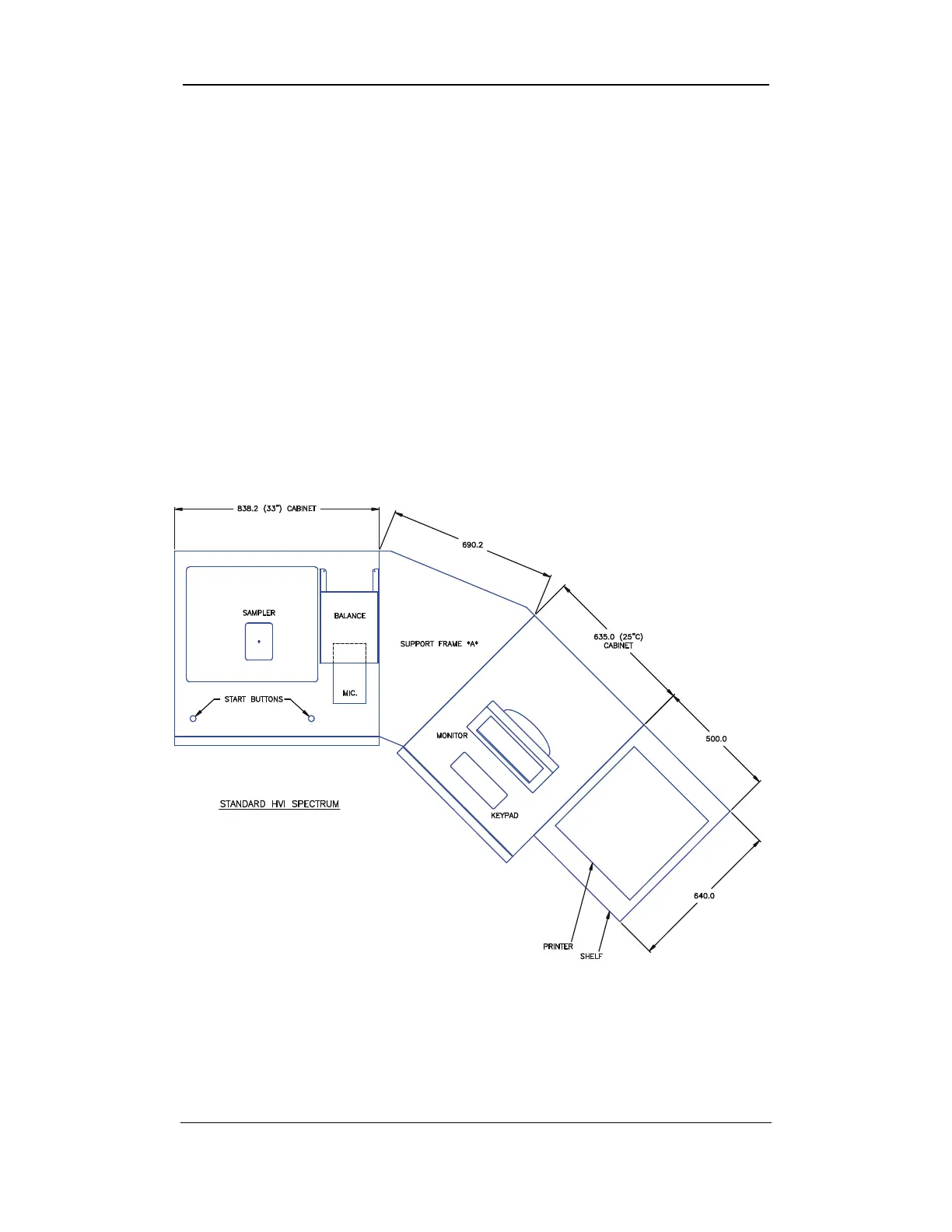 system cabinet by a triangular-shaped support frame that is 69 cm