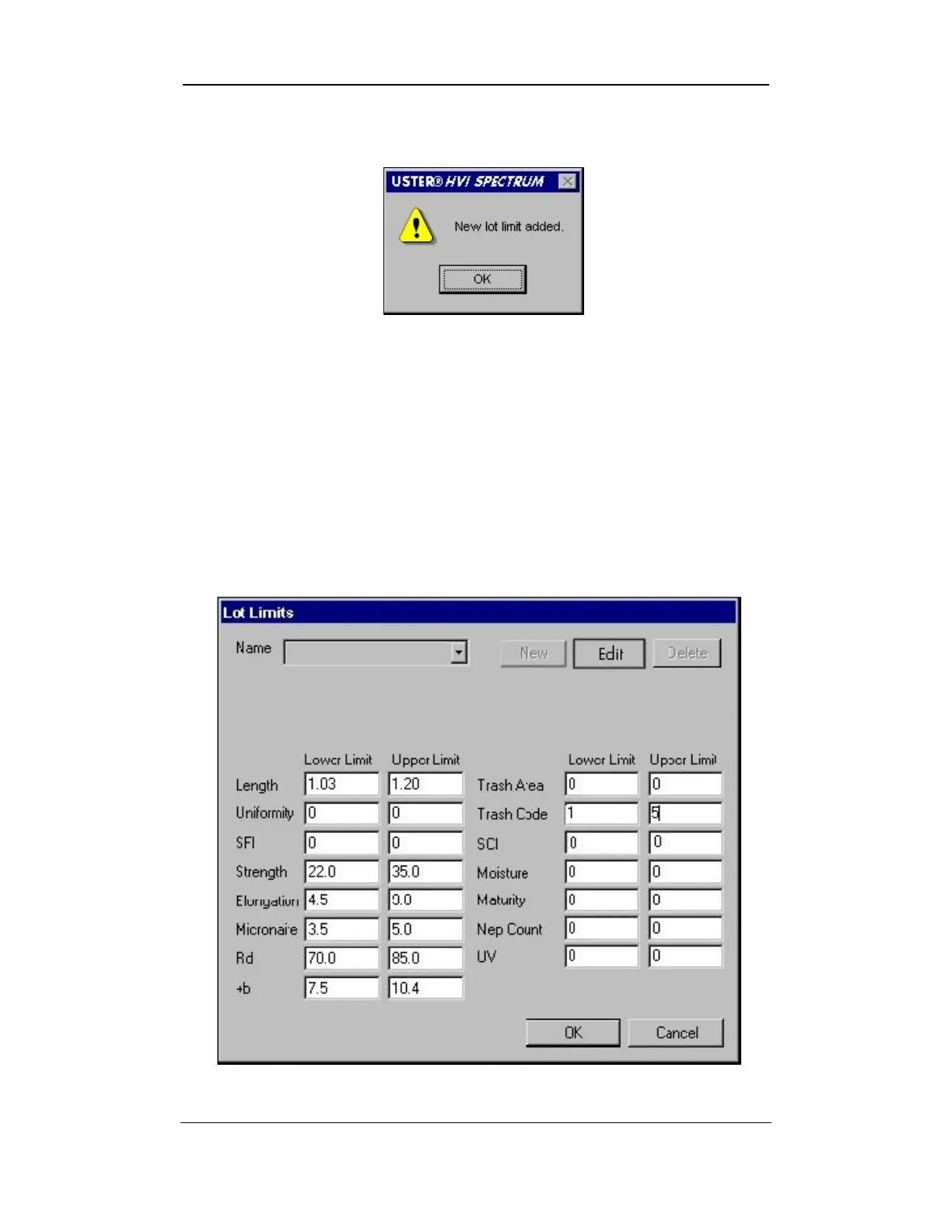 Figure 6-8: Lot Limits Screen – Edit