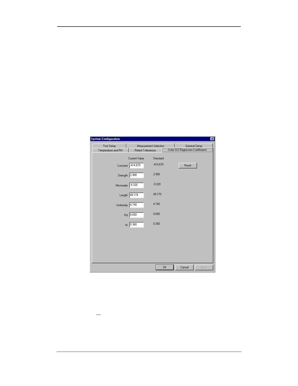 Figure 6-16: USTER® SCI Regression Coefficients Tab