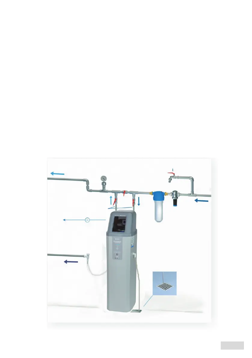 - zmiękczacz można podłączyć do dowolnego systemu rur (PVC, PPR, itp.). za pomocą elastycznych węży.