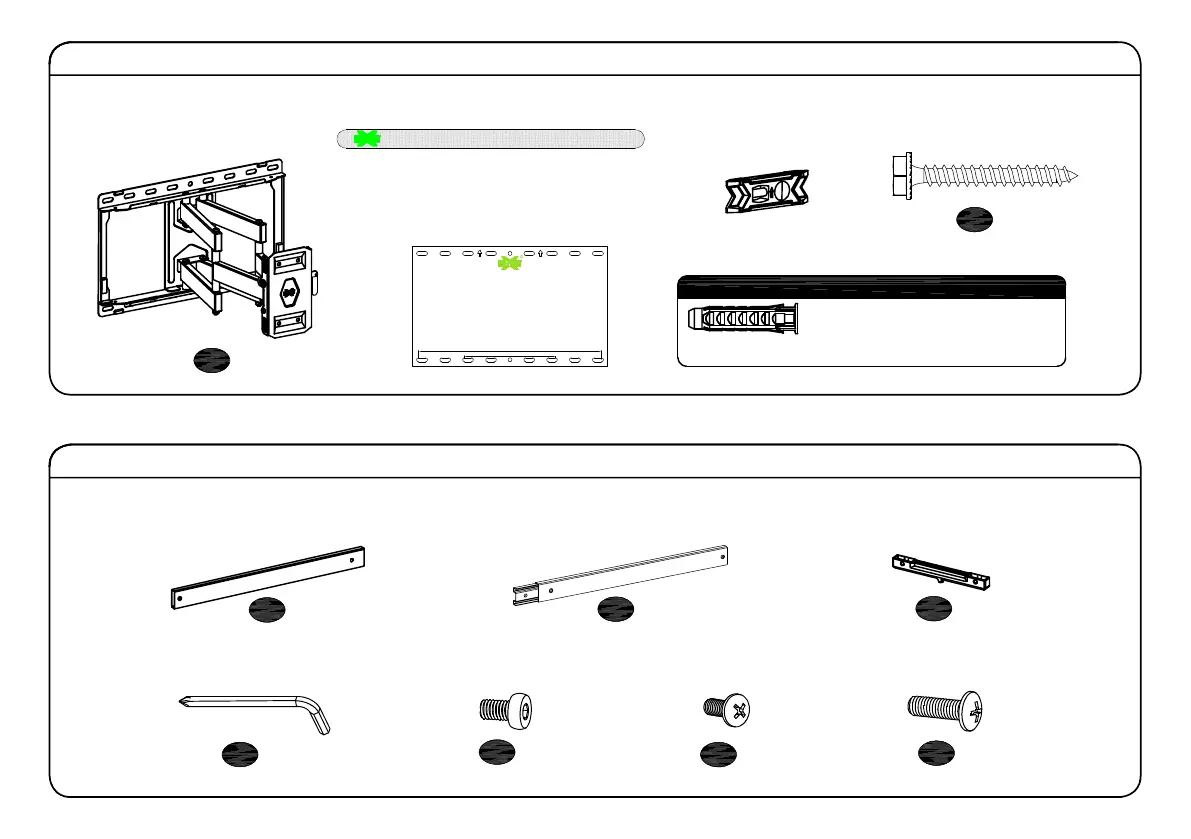 USX-MOUNT XML008-1K-01 - Component Identification for Installation Steps; Parts for Step 2: Wall Plate Attachment; Parts for Step 3: Arm Assembly