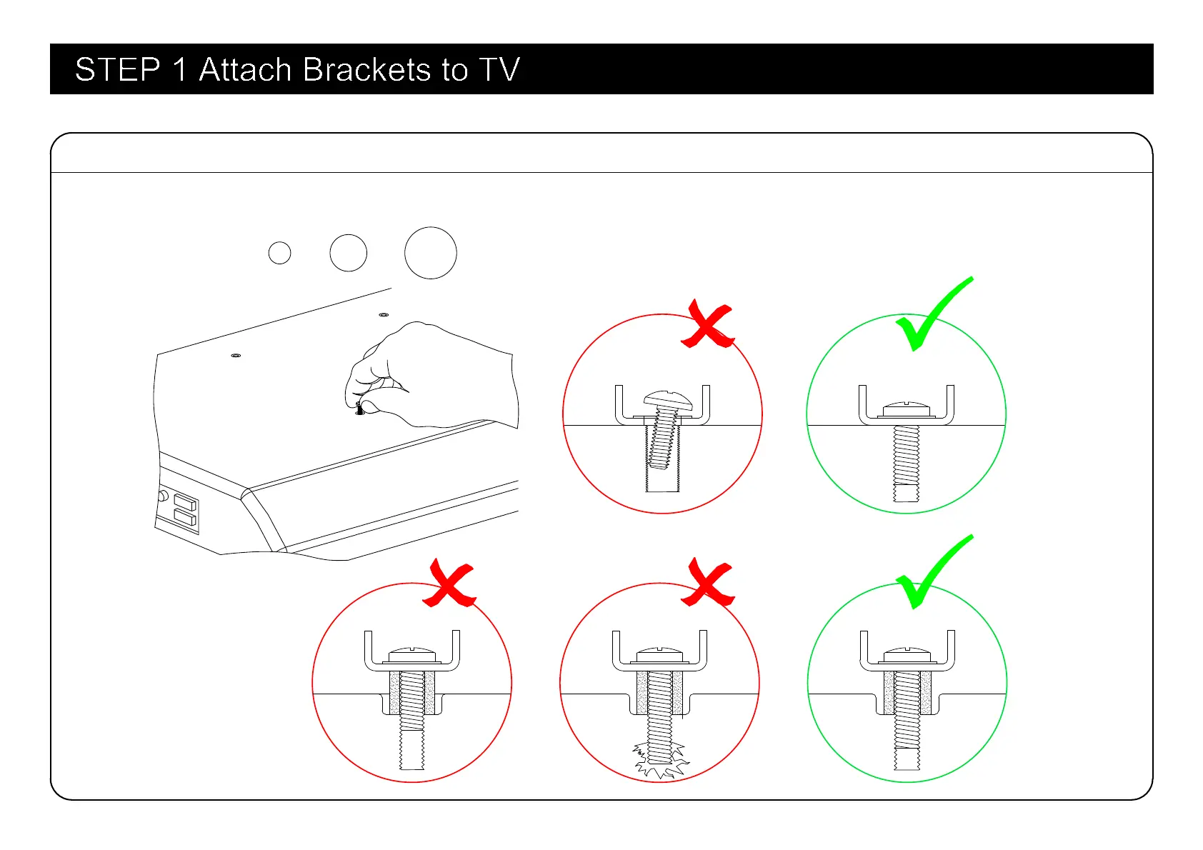 USX-MOUNT XML008-K-1 - STEP 1 Attach Brackets to TV; Select Correct TV Screws