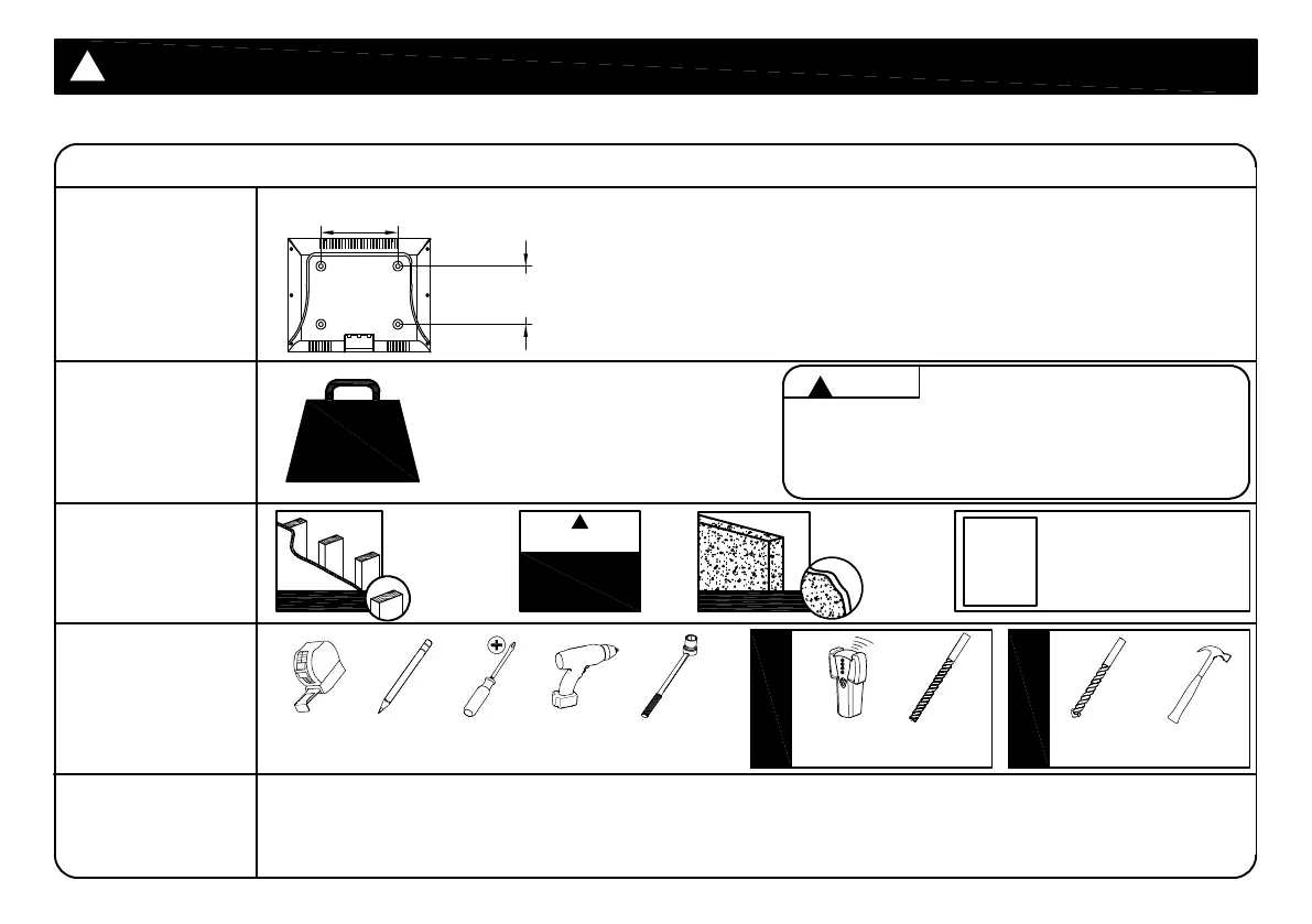 ● The wall must be capable of supporting five times the weight of the TV and mount itself