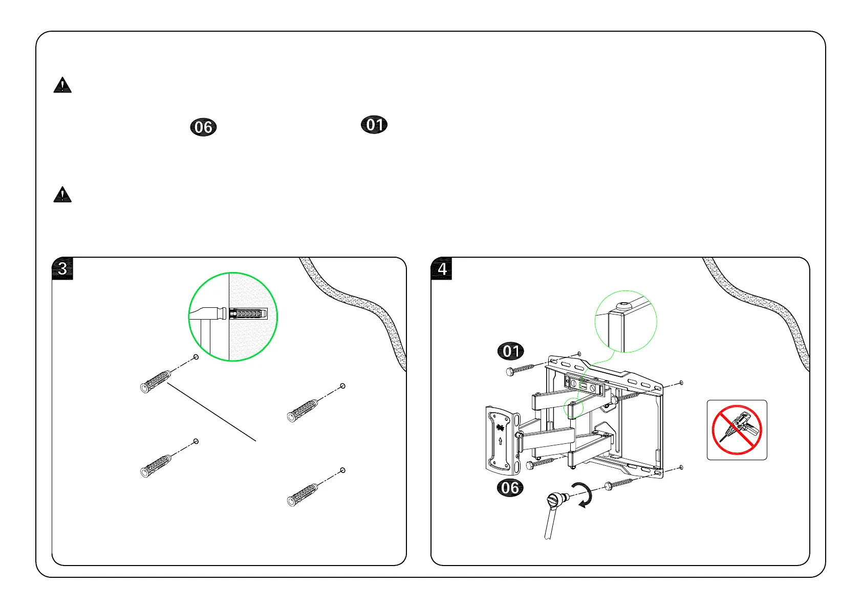 4. Insert wall plate using four lag bolts . Tighten the lag bolts only until they are pulled firmly