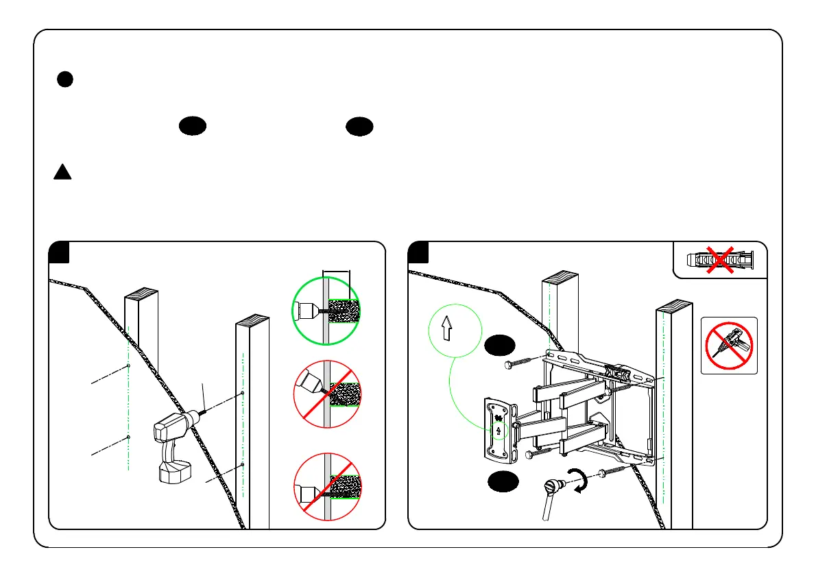 4. Install wall plate using four lag bolts . Tighten the lag bolts only until they are pulled firmly