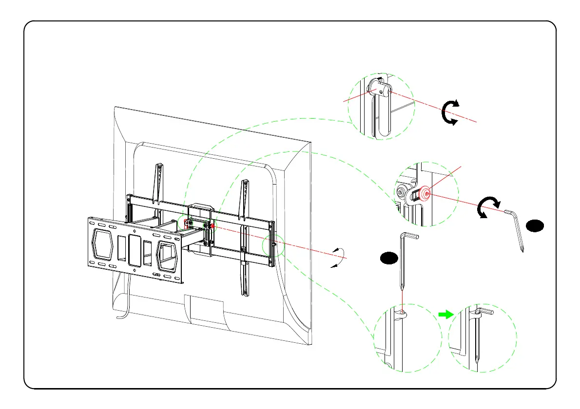 Loosen handle and tilting bolt, adjust TV to your desired position,then tighten handle