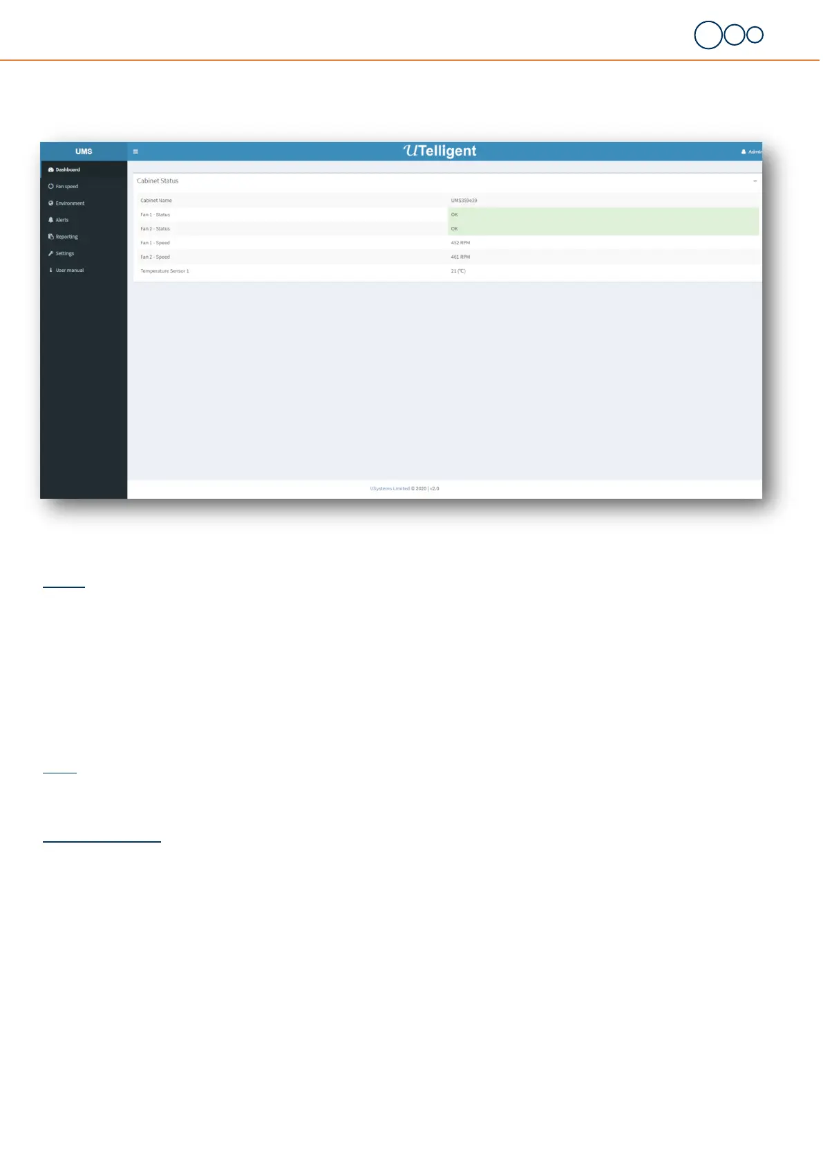 Fan Status: Displays the fan status and its value being either ‘OK’ or ‘FAIL’ - please see page 10 for fan alarm informaon