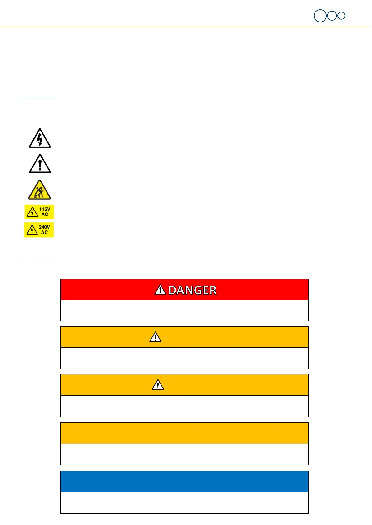 The following are used throughout the documentaon to indicate the appropriate hazard or instrucon related to safety.