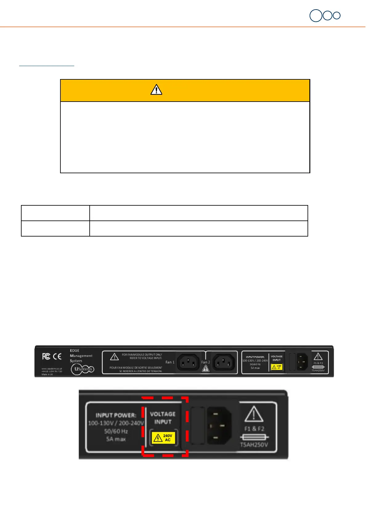 The EDGE-3 equipment is congure for either 100-130V fans or 200-240V dependant on the fans ed, this