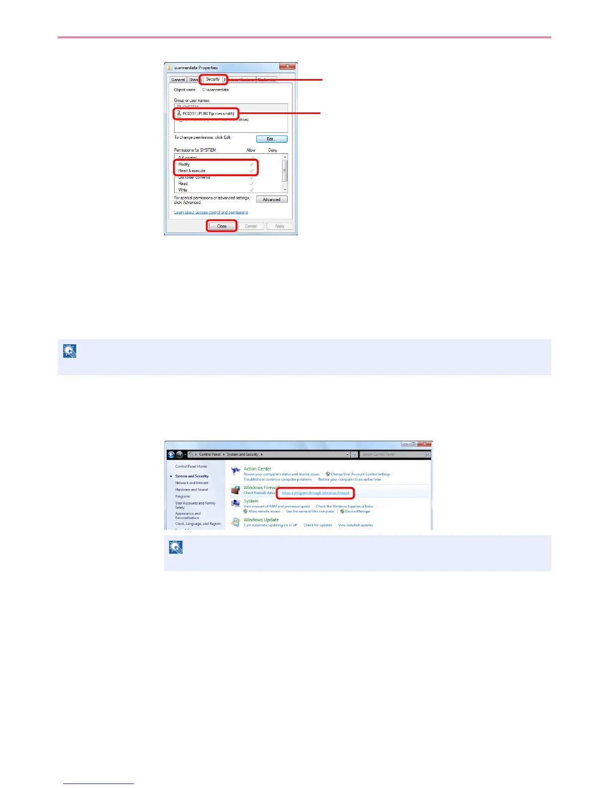 1 From the Start menu, select Control Panel, System and Security, and Allow a program