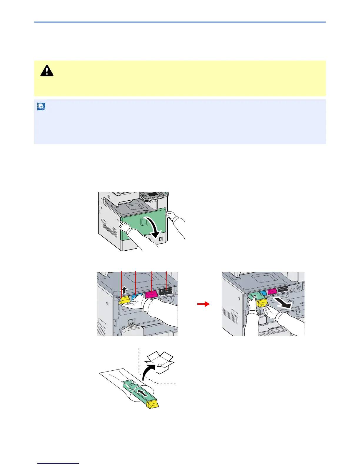 Return the exhausted toner container and waste toner box to your dealer or service representative. The collected