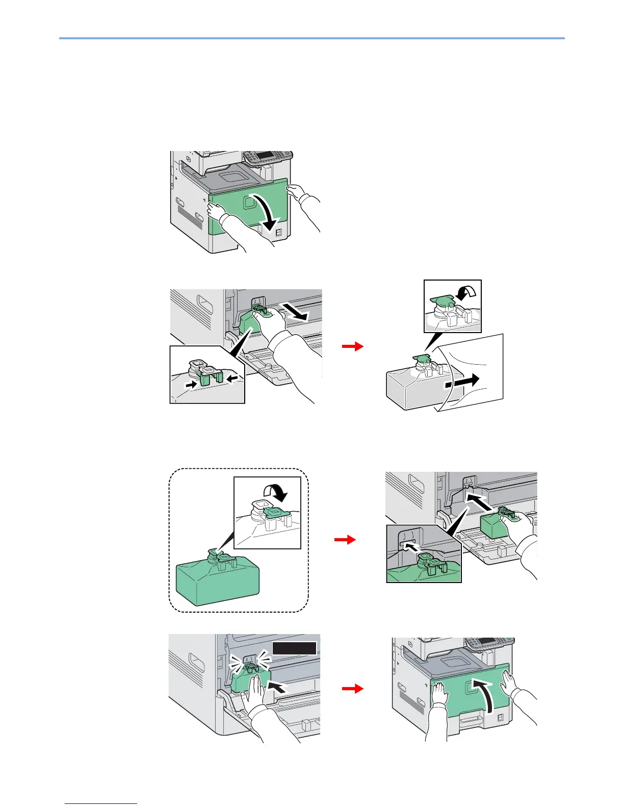 When the touch panel displays Check waste toner box., replace the waste toner box.