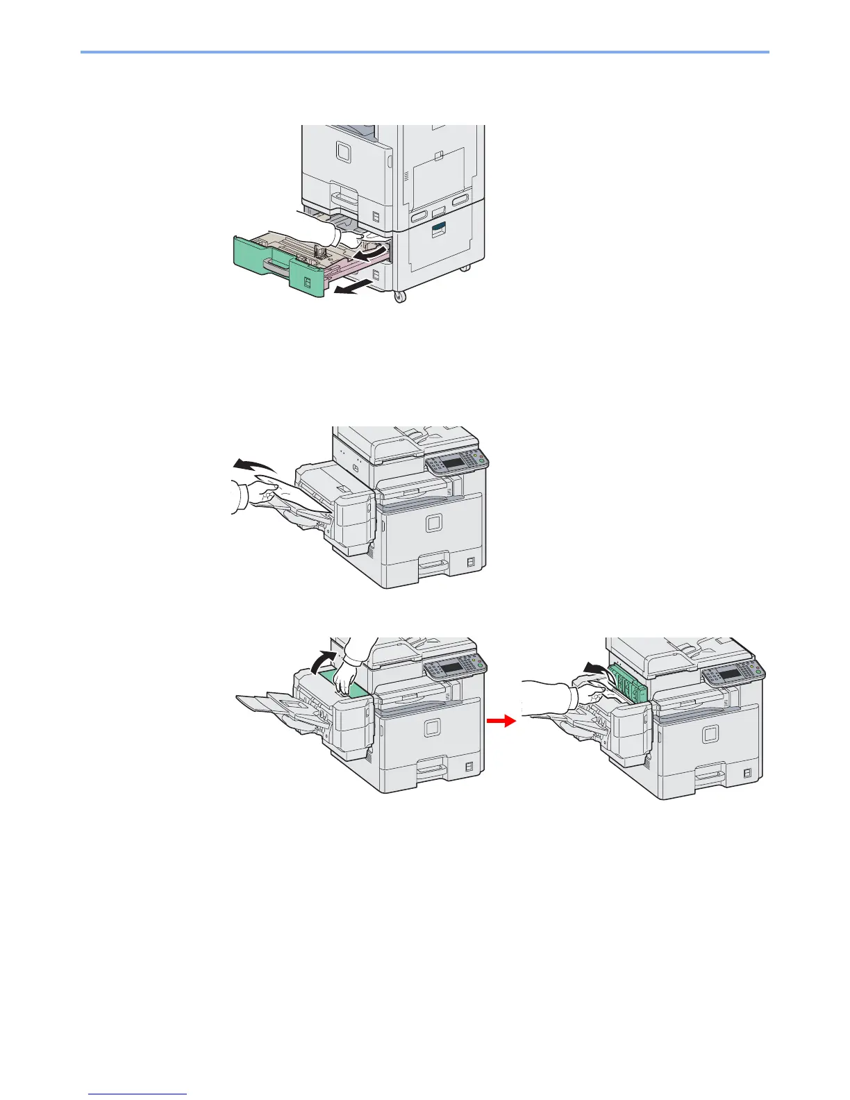 Follow the steps below to clear paper jams in cassette 2 or 3.