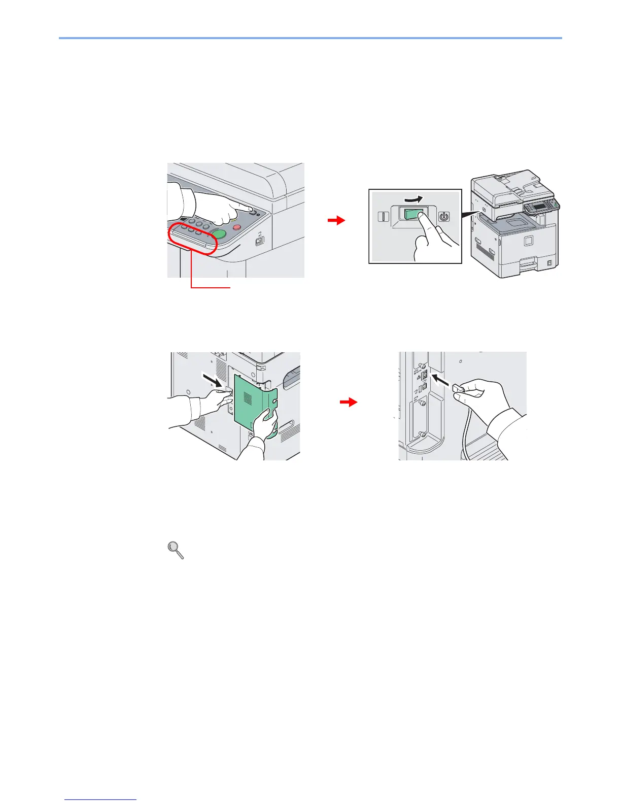 The equipment can be connected with a network cable and used as a network printer or network scanner.