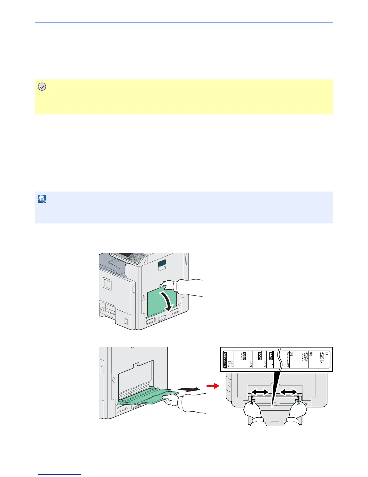 The multi purpose tray accepts paper sizes from A3 to A6 and Hagaki and from Ledger to Statement-R, 8K, 16K-R and