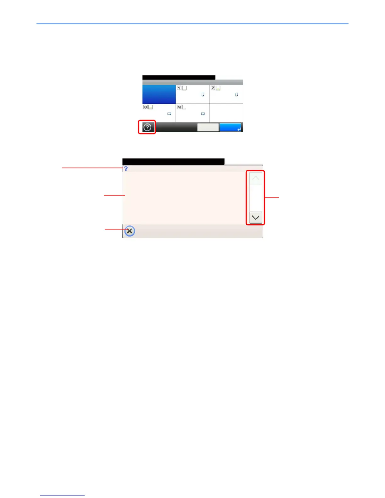 When the [?] (help) is displayed on the touch panel, you can press it to display the Help screen.