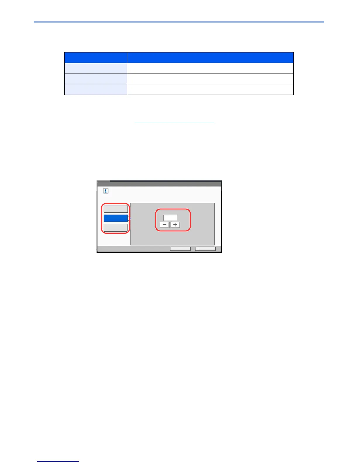 If [Counter Limit] is selected, press [+], [-] or numeric keys to enter the number of pages.