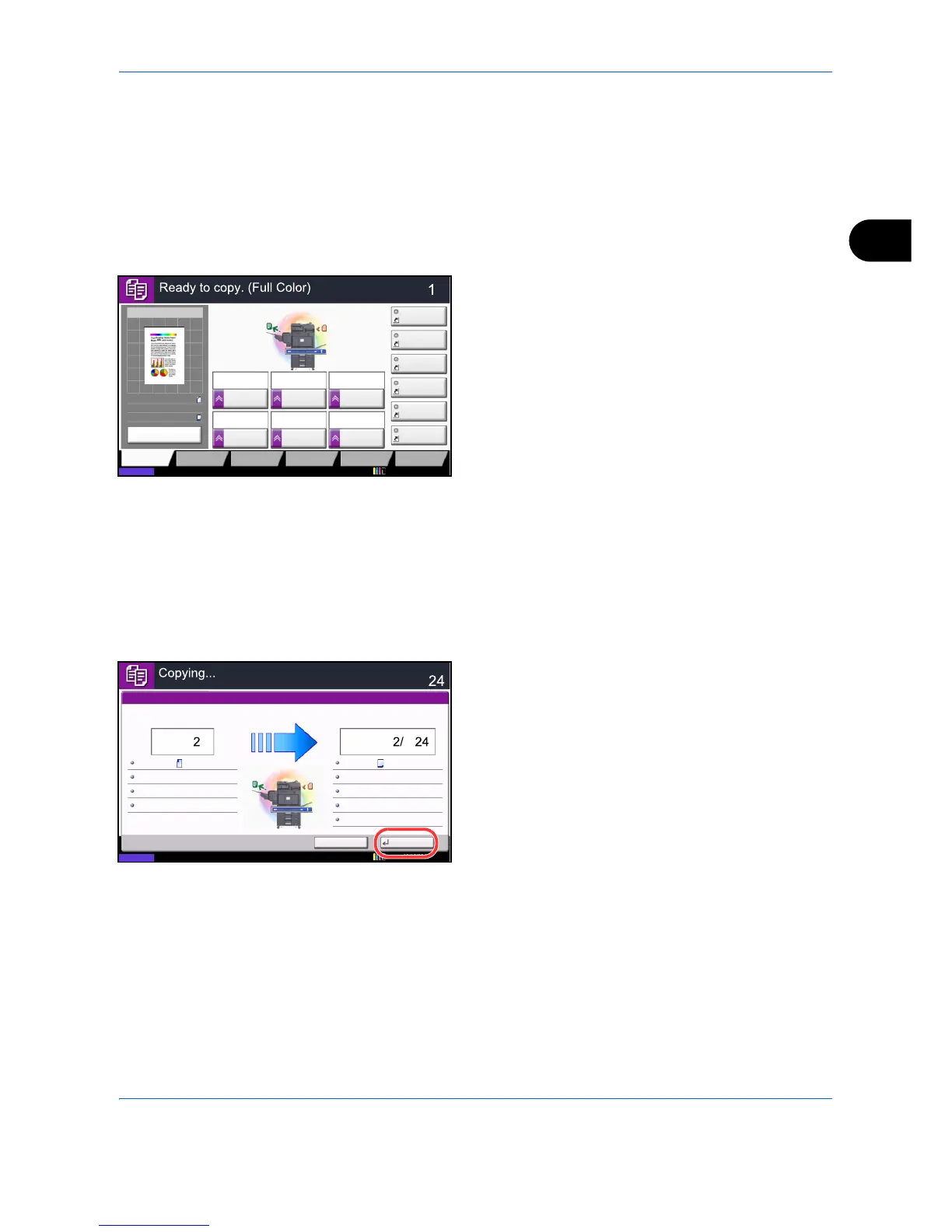 while the machine is printing. When the current print job ends, the reserved copy job is printed. The procedure