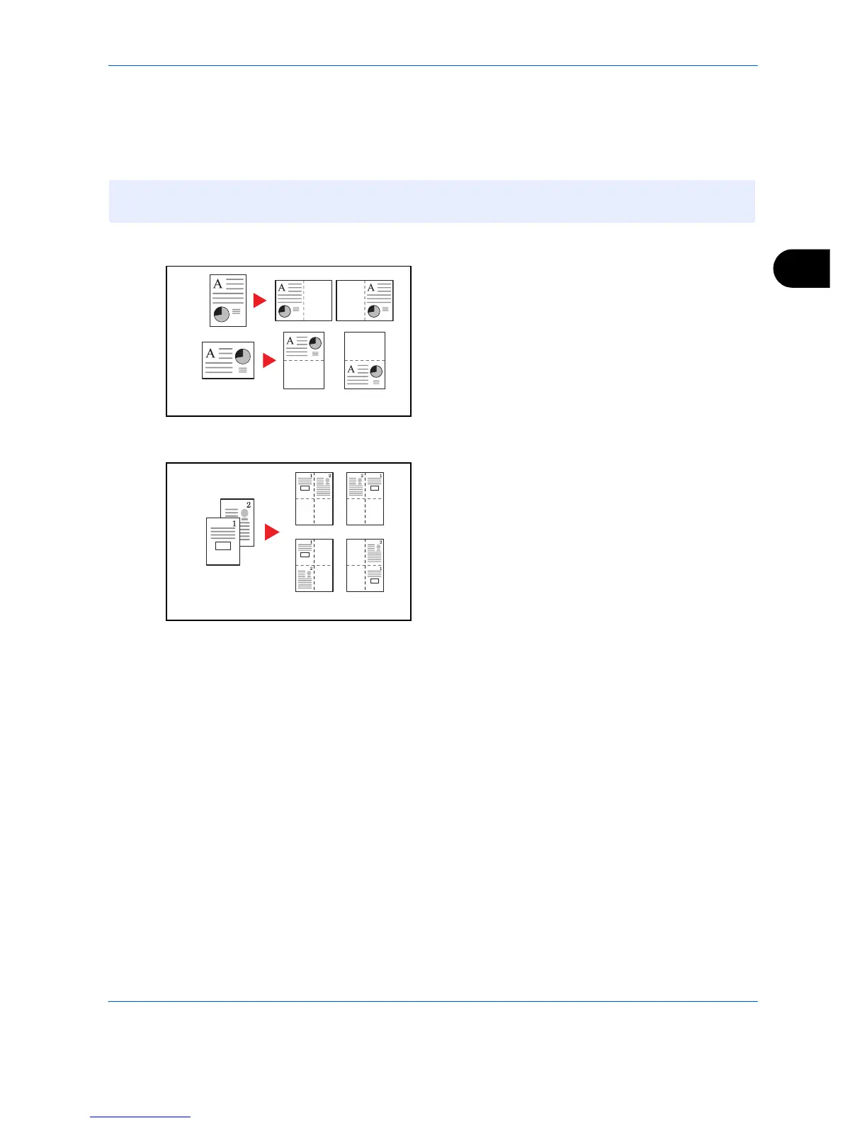 Delivers copies with a space for adding notes. You can also copy two originals onto the same sheet with a space