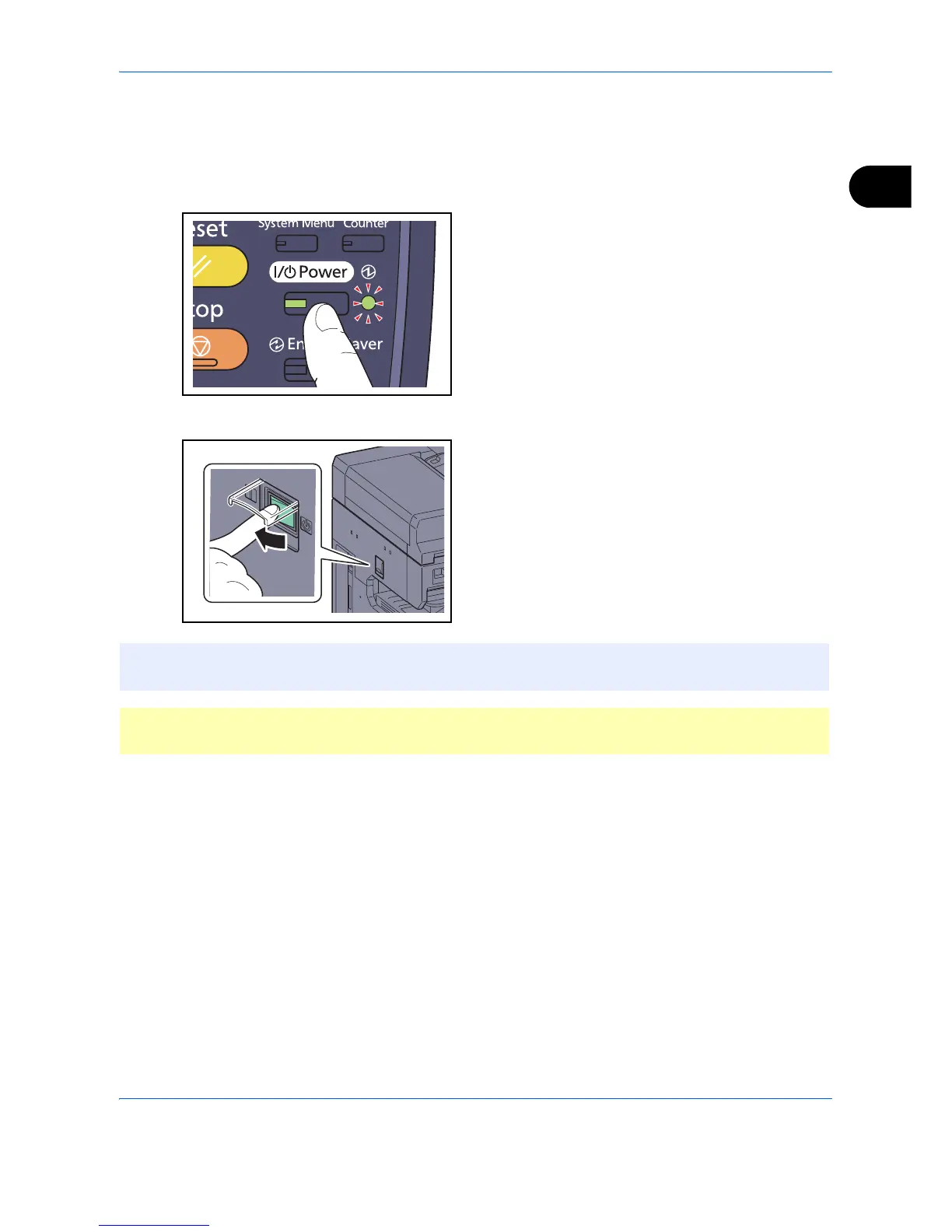 IMPORTANT: When turning off the main power switch, do not turn on the main power switch again