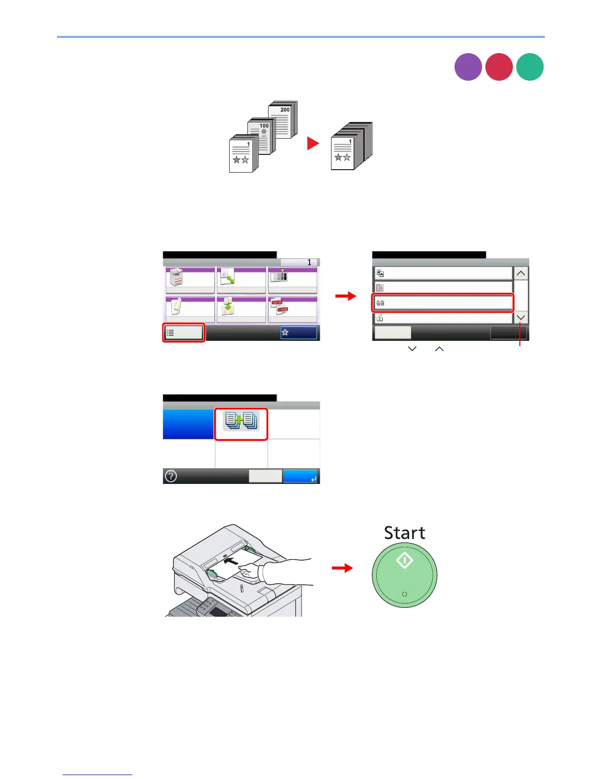 Once the original has been scanned, load the next original and press the Start key. Use the