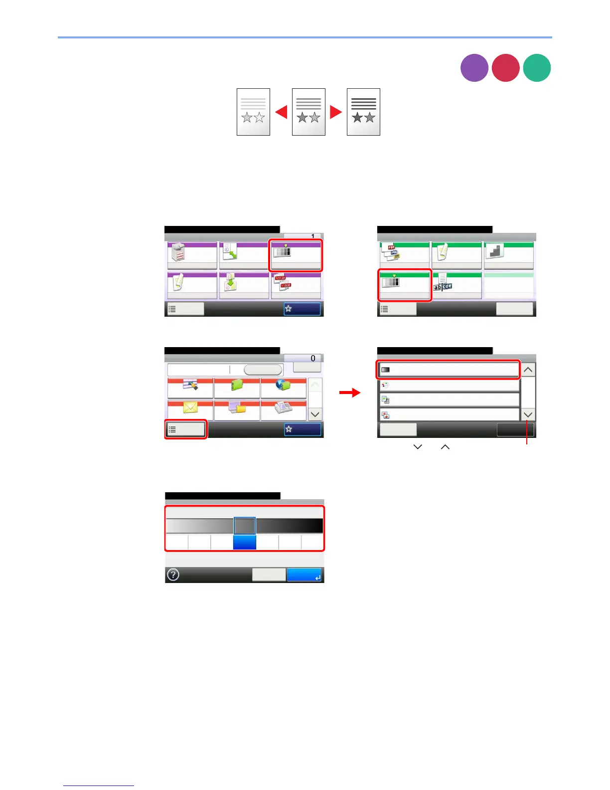 Press [-3] to [+3] (Lighter - Darker) to adjust density.